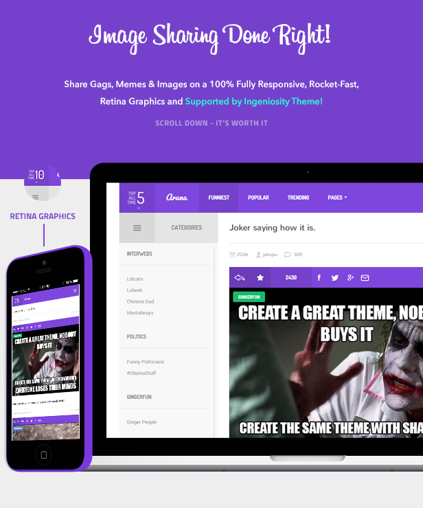 Aruna (Image Sharing, Gag, Meme template) is perhaps the first theme on Themeforest that offers such a suite.